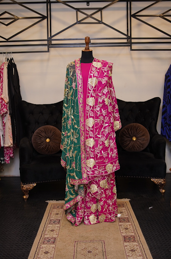 A regal contrast palette, artisanal handwork, and two dupattas make this bridal set the perfect harmony of tradition, color, and couture craftsmanship. This is not just a jora—it is a heirloom piece.